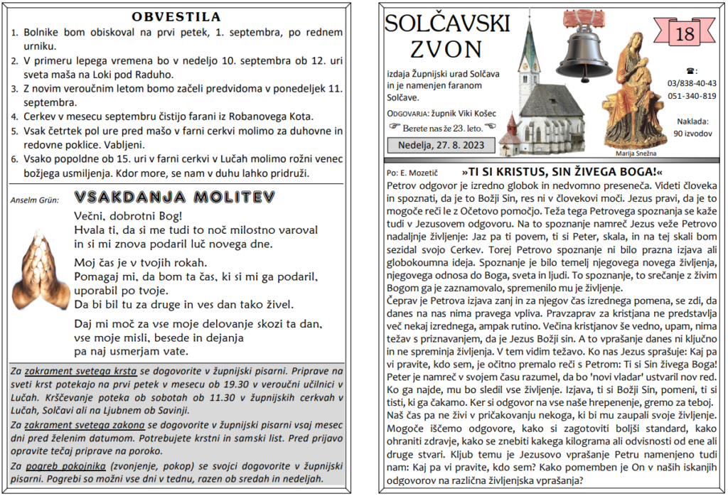 Oznanila, svete maše