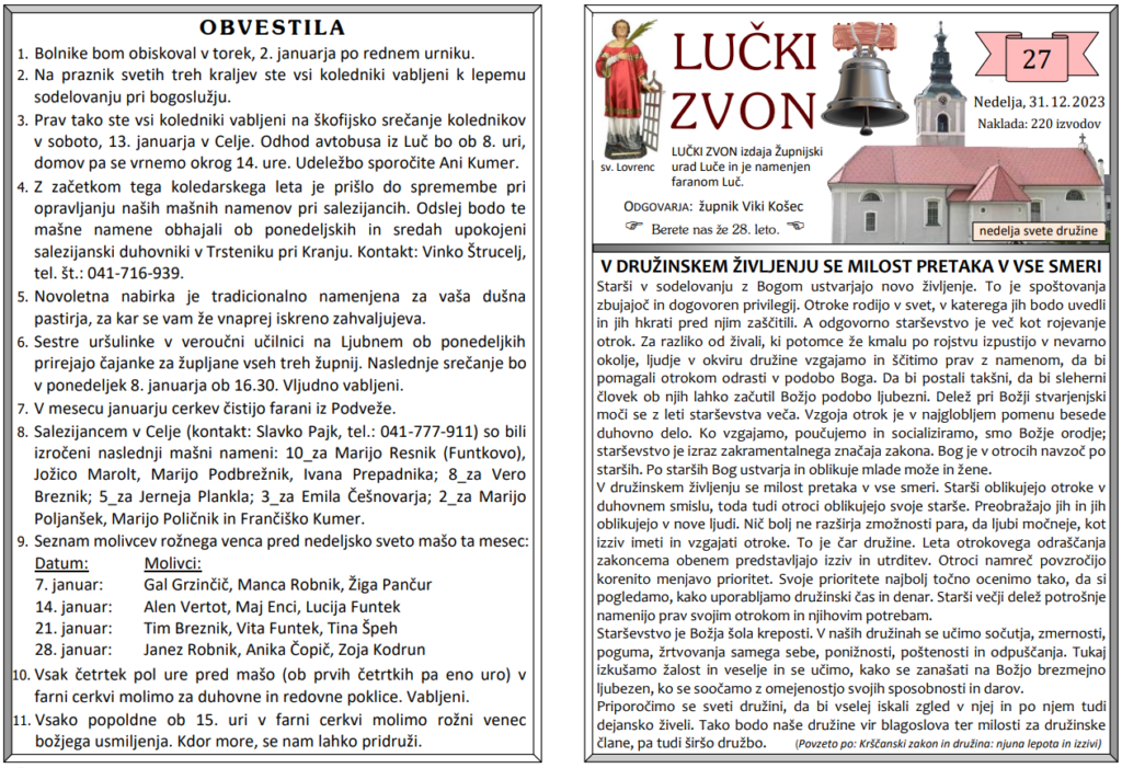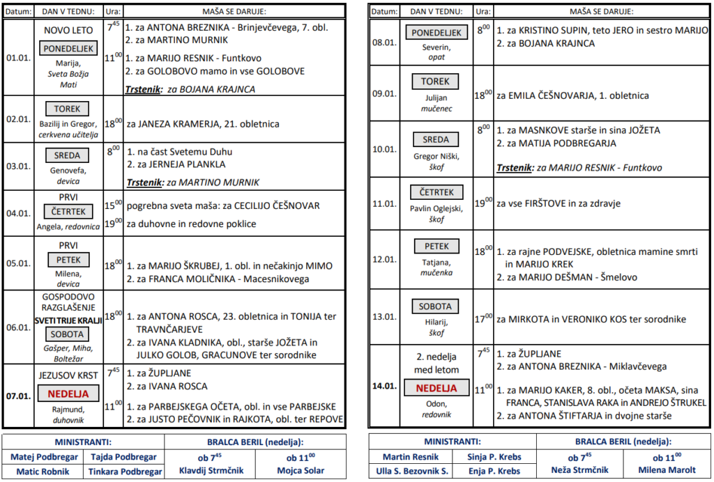 Svete maše od 1. 1. do 14. 1. 2024