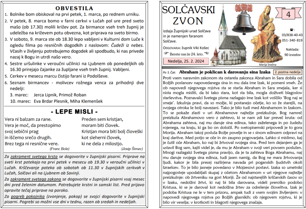 Svete maše od 26. 2. do 10. 3. 2024