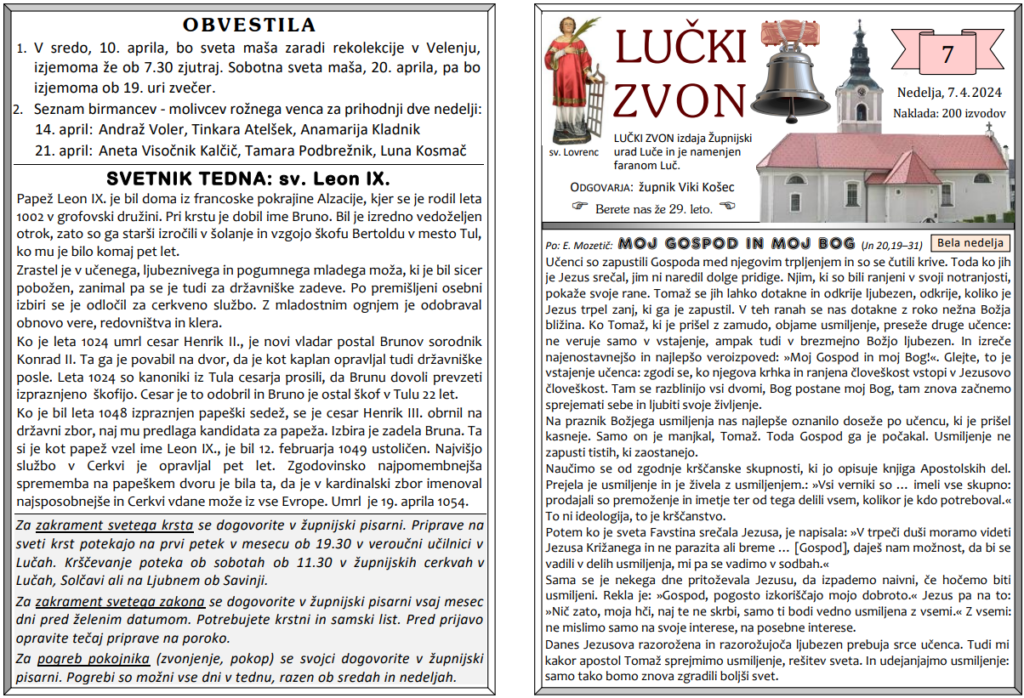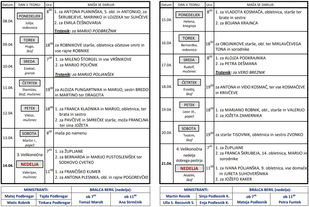 Svete maše od 8. 4. do 21. 4. 2024